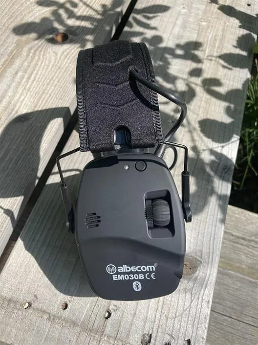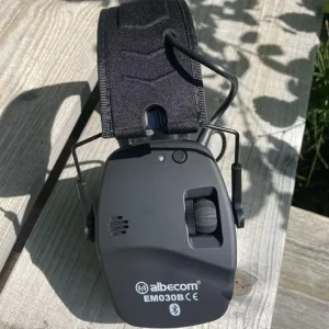 Albecom EM030-B hörselskydd med bluetooth har audioingång 3,5mm för anslutning av extern mobil eller radio. Den har en nivåberoende funktion som förstärker svaga ljud under 20dB och dämpar höga över 82dB. EM030-B har 2 inbyggda mikrofoner och automatisk avstängning efter 4 timmar.