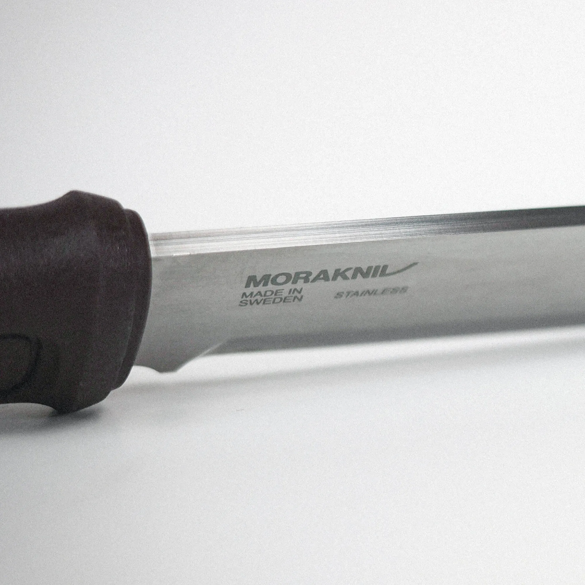 Det mörkbruna handtaget är ergonomiskt utformat med ett Dalamönstrat friktionsgrepp och fingerskydd för säkert grepp i alla förhållanden. Namnet kommer från fäboden Garberg utanför Mora – en plats präglad av styrka, självhushållning och ett liv i samklang med naturen.