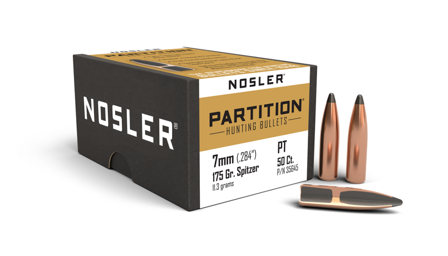 Nosler Partition® är utformad med en helt avsmalnande mantel av kopparlegering som brister omedelbart vid träff och böjer manteln jämnt utåt. Dubbelkärndesignen säkerställer snabb expansion av den främsta kärnan medan Noslers integrerade skiljevägg stöder den expanderade svampformade delen, vilket gör att den inneslutna bakre kärnan förblir intakt och behåller mer än två tredjedelar av den ursprungliga kulvikten för djup penetration. Nosler Partition®s speciella blylegerings-dubbelkärna ger överlägsna svampformade egenskaper vid praktiskt taget alla anslagshastigheter oavsett jakt.